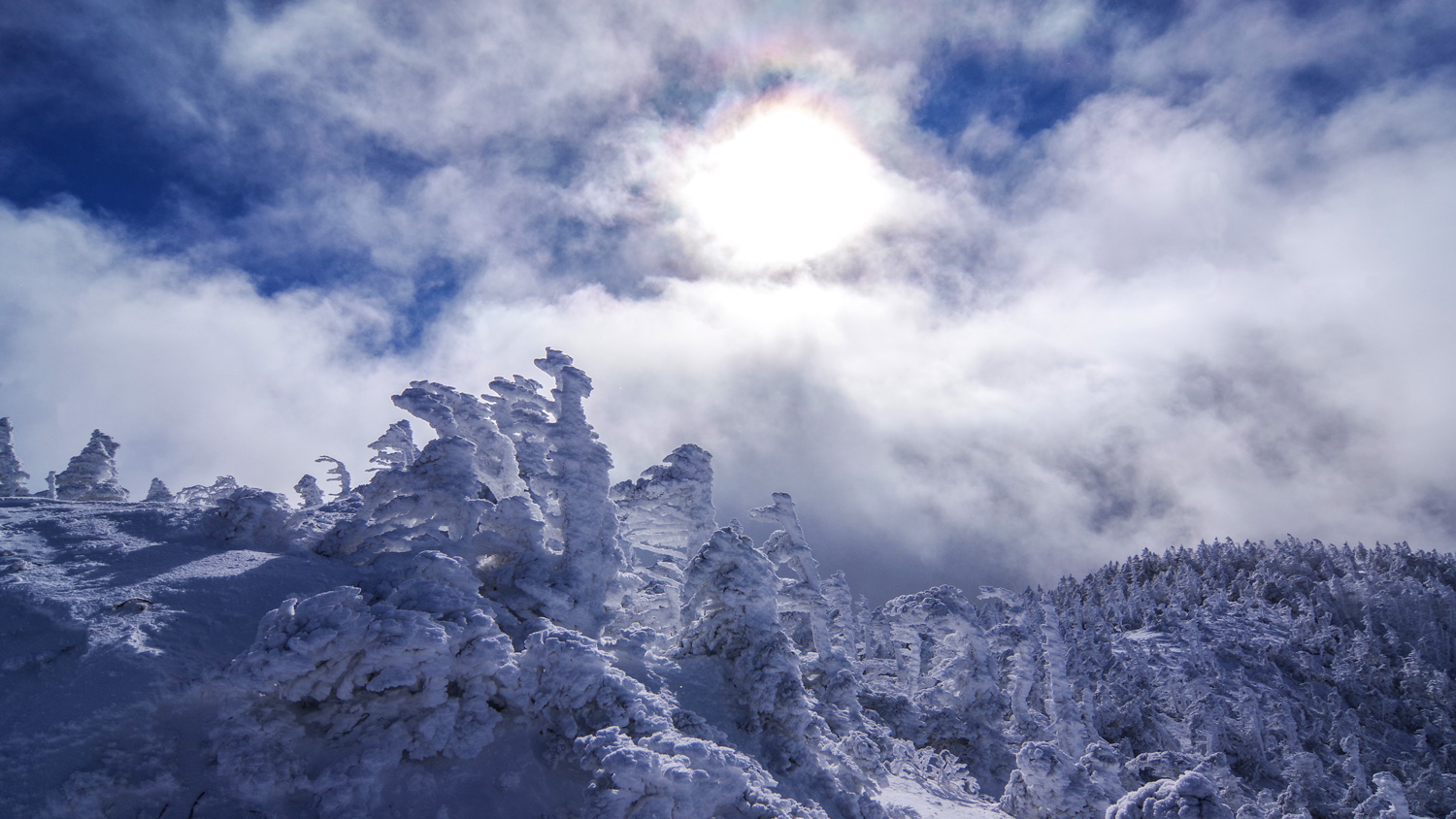 樹氷もこうして改めてみるとまるで雪の結晶みたいで面白いですね