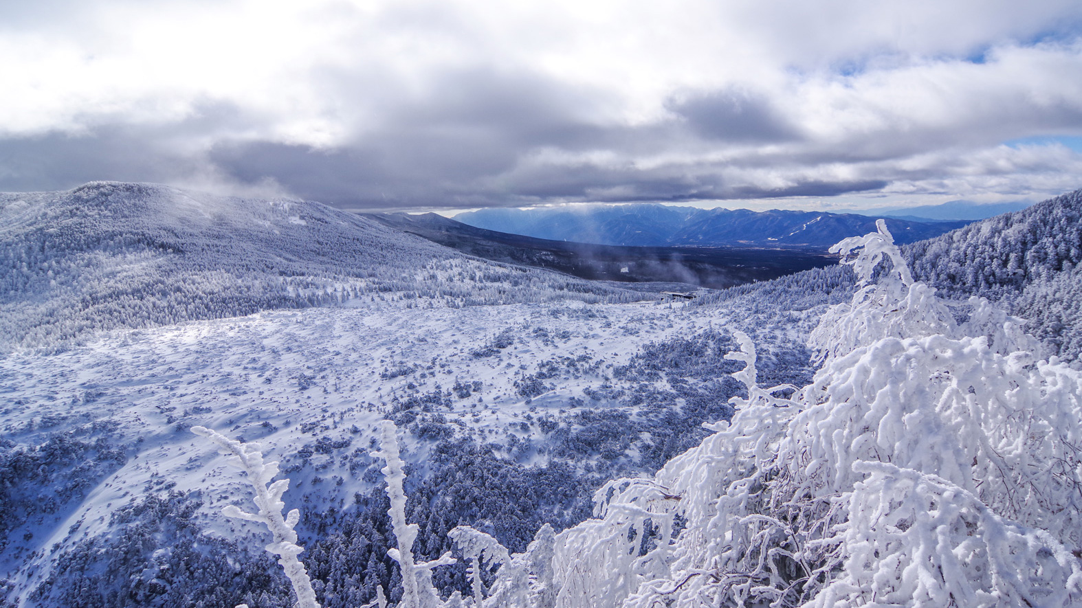 林道の木は完全に樹氷になっていて、平地では中々見れない不思議な景色でした