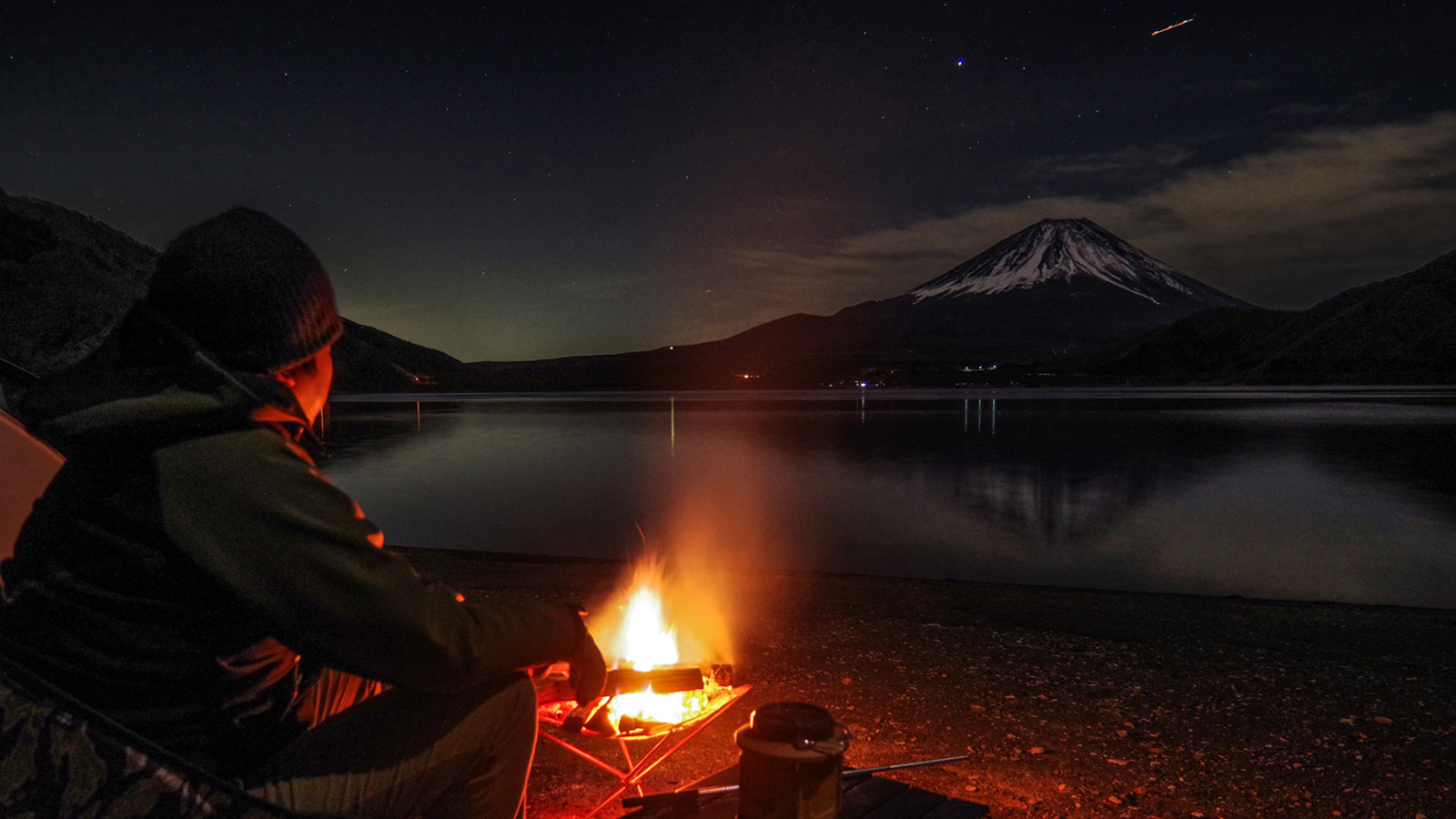 設営が終わったころには富士山も暗くなっていたので焚火を始めましょう